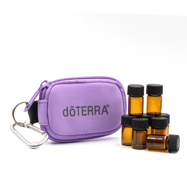Contents: 1 dōTERRA® branded case with key ring, carabiner and 8 sample vials.