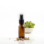 This 15ml amber glass bottle comes with a black pump mist spray head and clear plastic cap for protection.