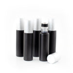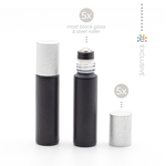 Contents: Set of 5 Frosted Glass Roller Bottles, Premium Stainless Steel Rollers and Metallic Caps.