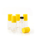 5ml Clear Glass Roller Bottle with Confetti (Yellow) Lid & Premium Stainless Steel Rollerball – 5 pack