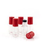 5ml Clear Glass Roller Bottle with Lipstick Kiss (Red) Lid & Premium Stainless Steel Rollerball – 5 pack