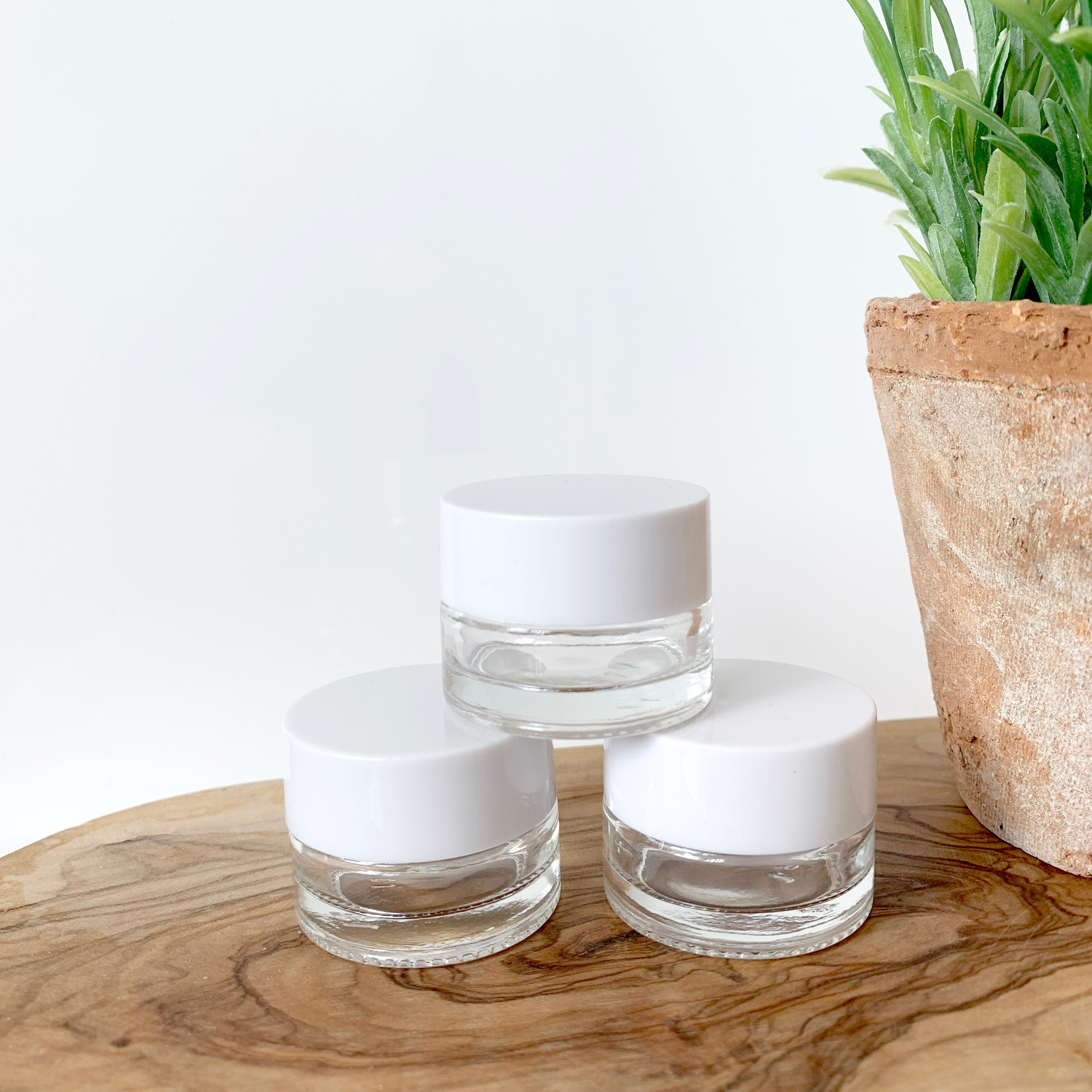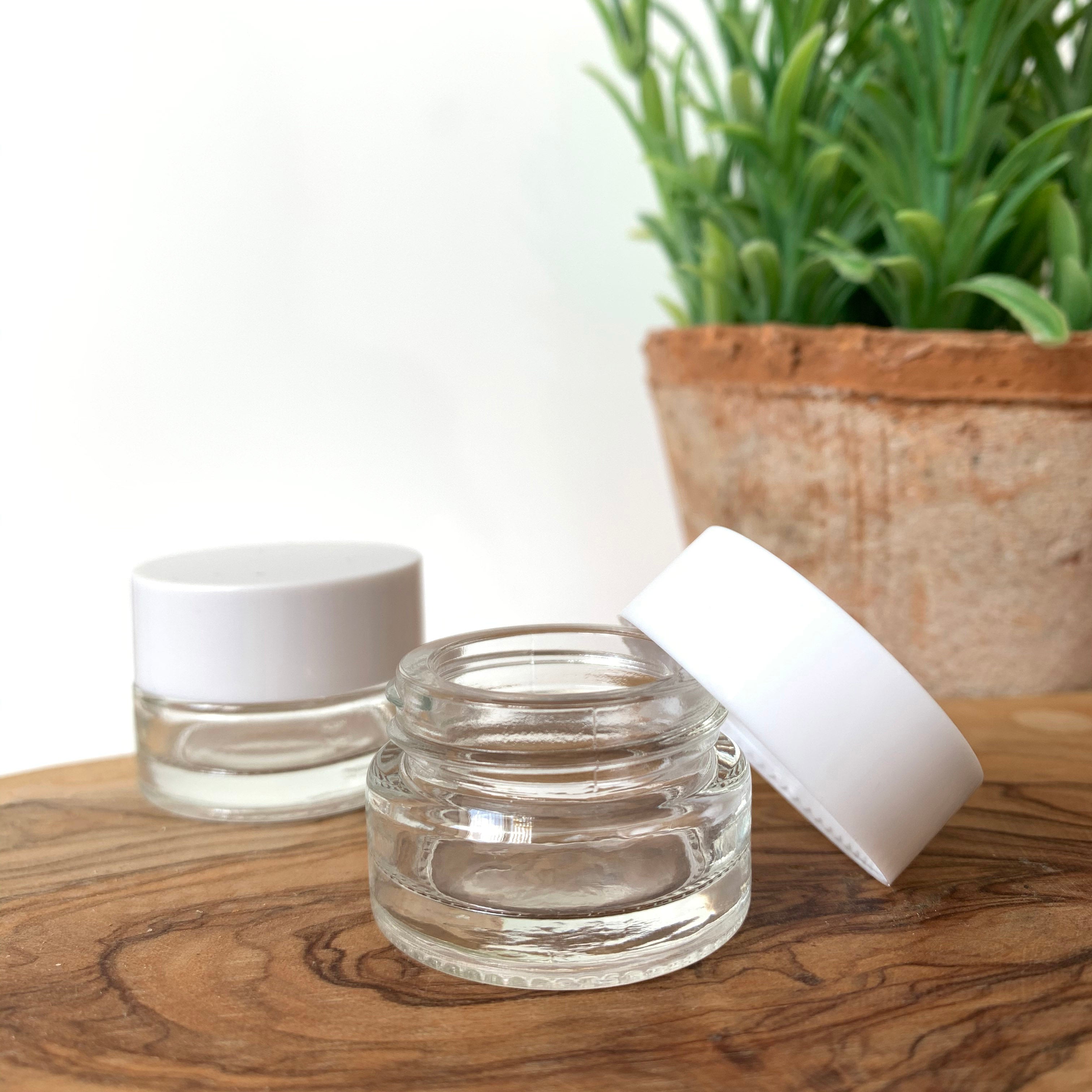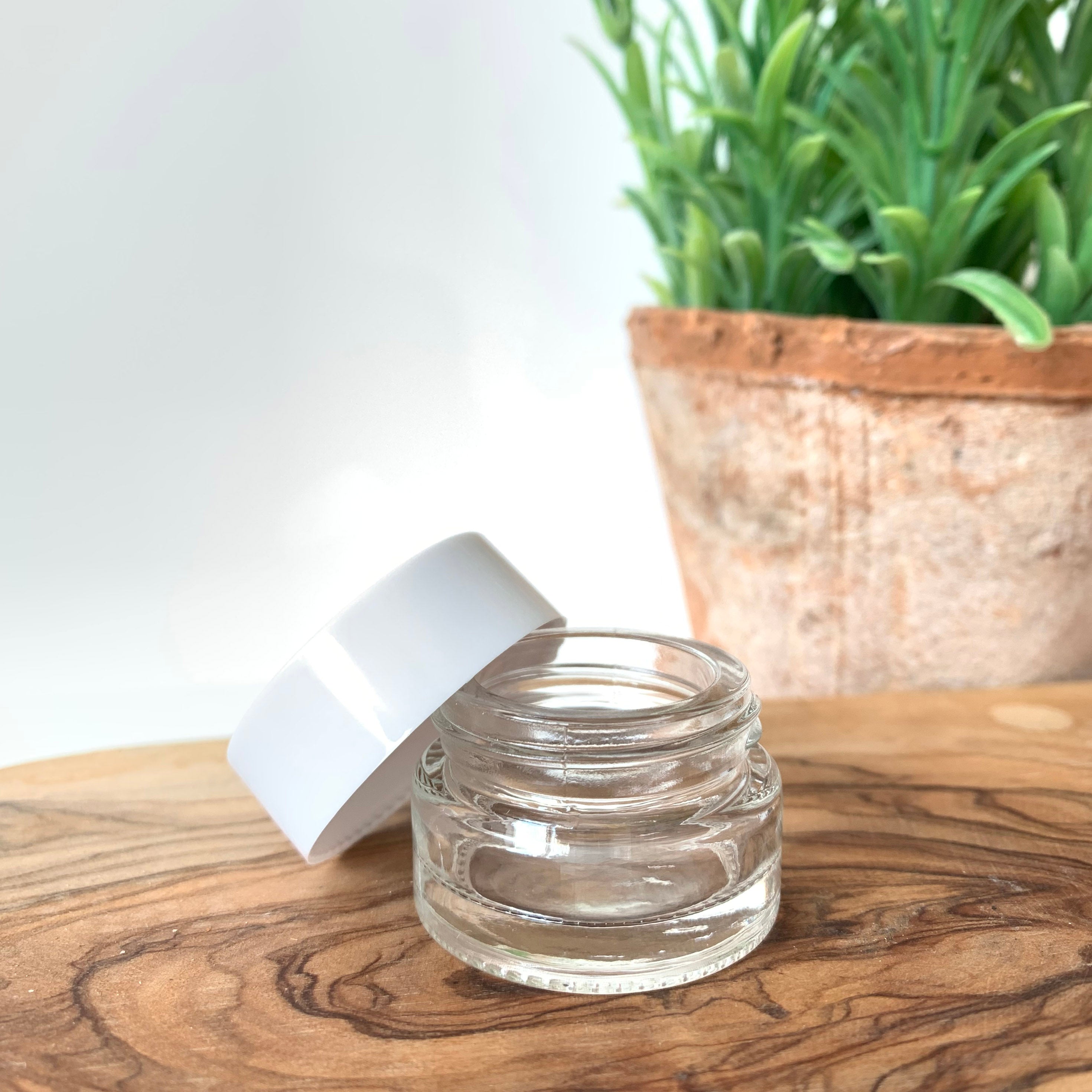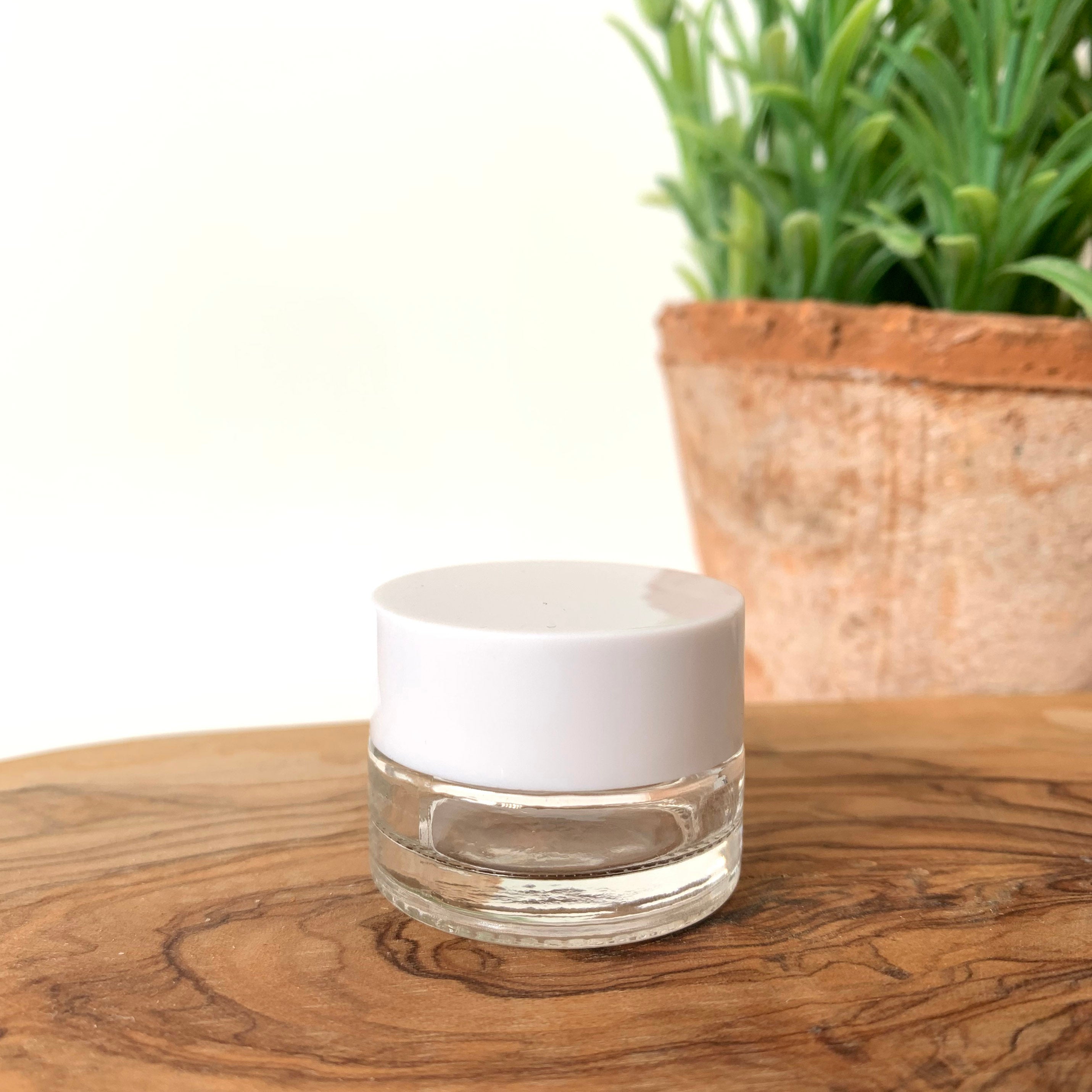This clear glass jar is the perfect size for natural lip balms or for samples of lotions and creams, or why not utilise it for a travel-sized measure of your favourite rub.