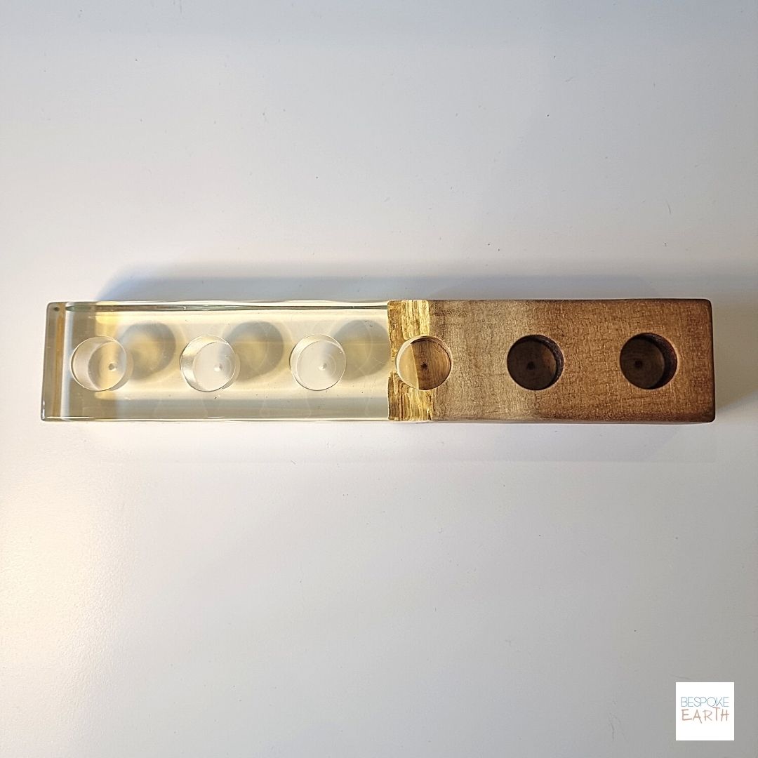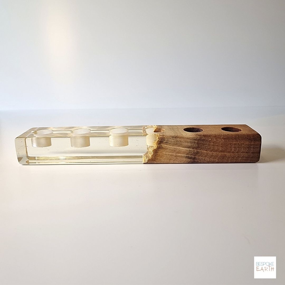 This beautiful handmade Saringa wood and resin stand holds six 10ml roller bottles.