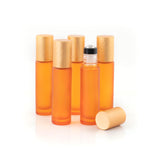 Contents: Set of 5 Frosted Glass Roller Bottles, Premium Stainless Steel Rollers and Metallic Caps.