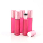 Contents: Set of 5 Frosted Glass Roller Bottles, Premium Stainless Steel Rollers and Metallic Caps.