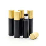 Contents: Set of 5 Frosted Glass Roller Bottles, Premium Stainless Steel Rollers and Metallic Caps.