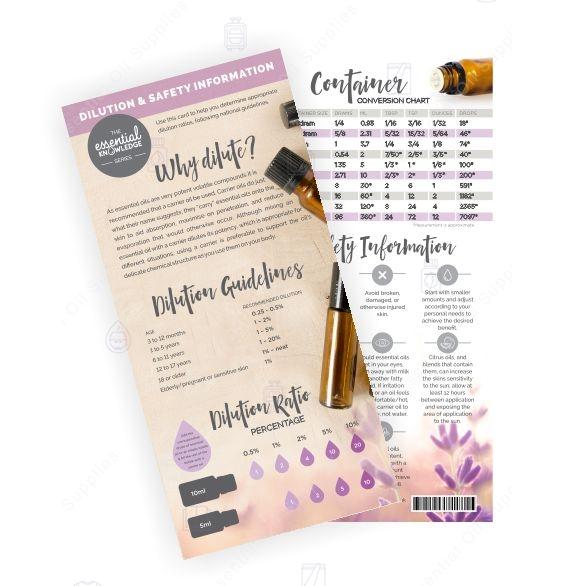 Part of the "Essential Knowledge Series", this rack cards is and ideal quick reference guide containing nationally recognised guidelines for using essential oils. It contains a brief overview as to why dilution is important, conversion ratios for varying age ranges, capturing dilution guidelines, safety information and a conversion table to enable you to quickly see how to convert drams, drop, ml, oz, tbsp and tsp. Use this card as a quick reference tool whether you're new to oils or a seasoned user. What about gifting it or using as an accompaniment to a welcome kit, using as a bookmark or display on a stand or stall when dilution ratios need to be readily available. These rack cards are appealing to those new to oils as well as seasoned oilers to serve as reminders or reference. They can be used as freebies at events, used as bookmarks or gift a pack to downline members. Hosts can put them in stands at events where dilution or measurement conversion is required.