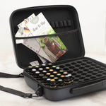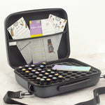 The case also contains a handy pouch inside to house your rack cards and mini tear pads. This sleek carrying case makes carrying oils to meetings, events, and trade shows easy.